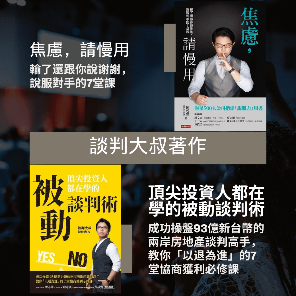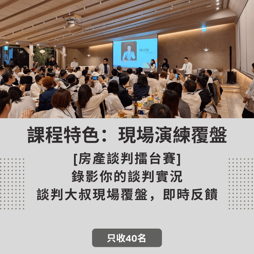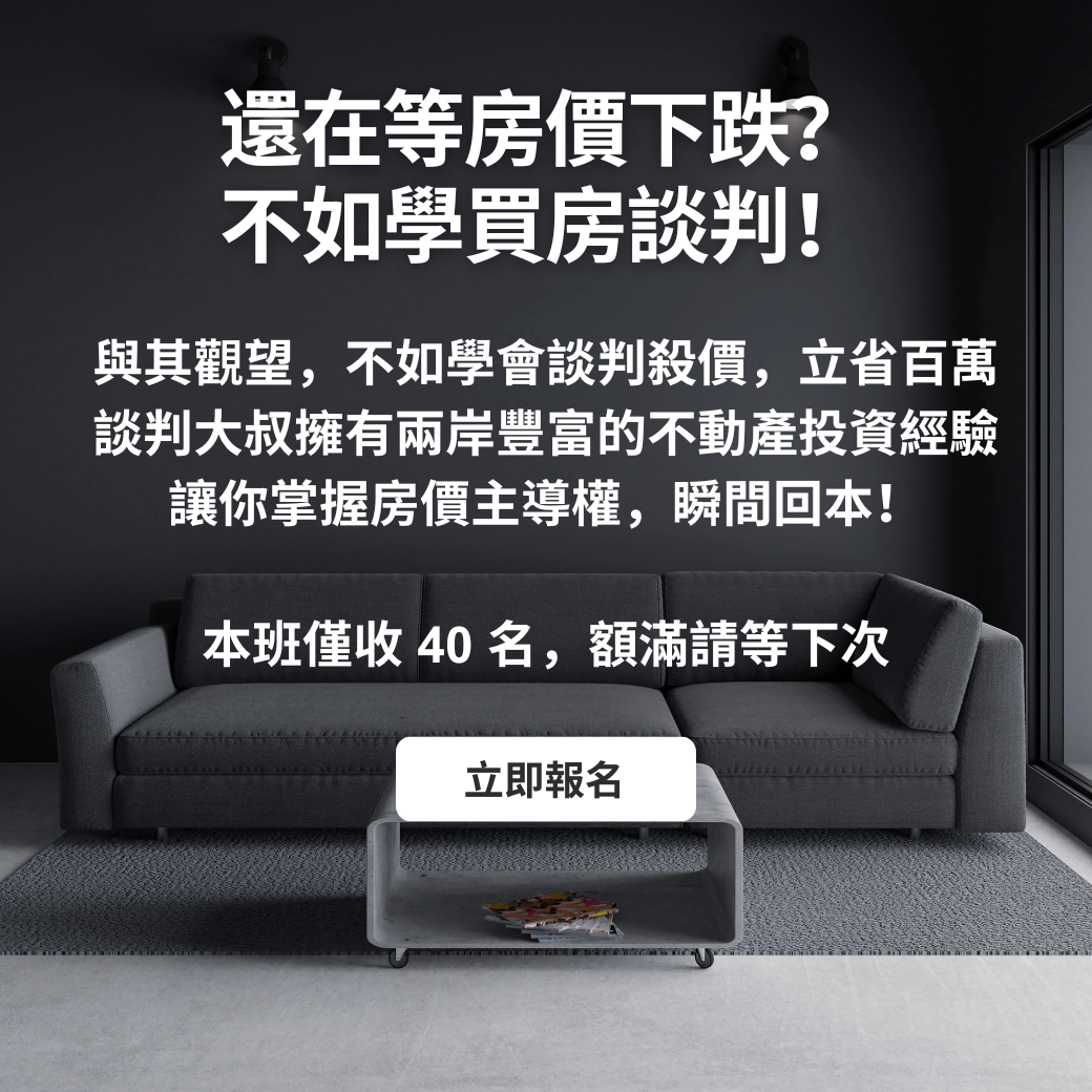 談判大叔買房心法台灣首次公開專班,教你買房必勝的談判殺價術!課後陪跑 3 個月 X 保證賺回 2 倍學費